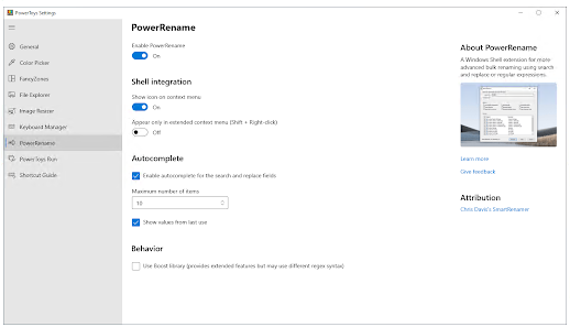 提示:还要确保在 Shell 集成部分下打开“在上下文菜单上显示图标”选项。如果关闭此功能,您将无法在上下文菜单中看到 PowerRename 功能,即使该功能本身已启用。