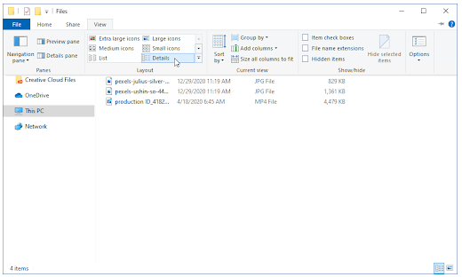 使用位于文件资源管理器顶部的标题菜单,单击“查看”选项卡。这将使用新部分扩展您的窗口。