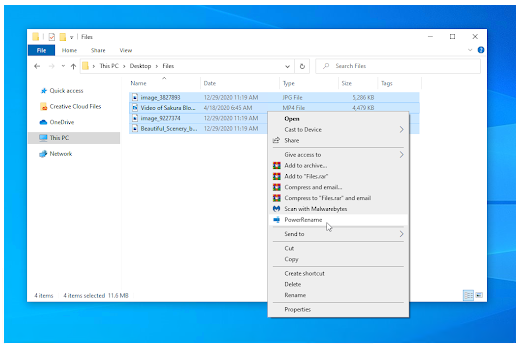 右键单击所选文件并从上下文菜单中选择PowerRename 。