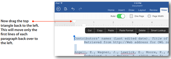 如何在 Word for Ipad 或移动设备上制作悬挂缩进。