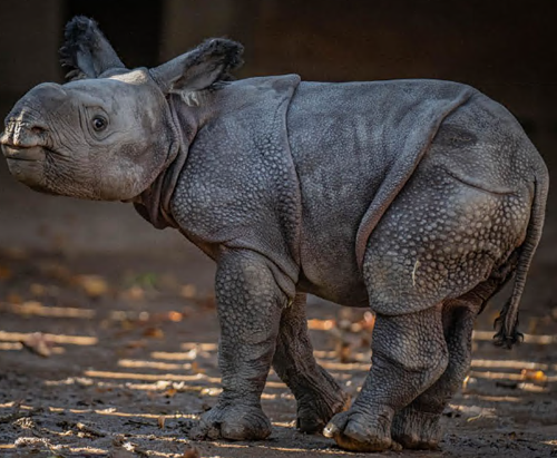 去年,一只雌性大独角犀牛(也称为印度犀牛)小牛在切斯特动物园出生,重达 50 公斤(110 磅)。她会长到 1.7 公吨左右。该物种的种群分布在印度和尼泊尔,很容易灭绝,尽管由于保护工作和保护区,它已从 1900 年代的极低数量恢复过来。