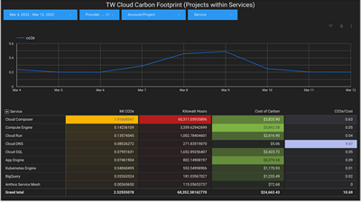 这是涵盖我们最大排放峰值的最高点的时间跨度。我们可以看到导致排放量增加最多的产品是 Cloud Composer。深入观察,我们了解到三个 Google Cloud 项目贡献了其中的 90%。我们联系了负责这些项目的团队。调整开始。