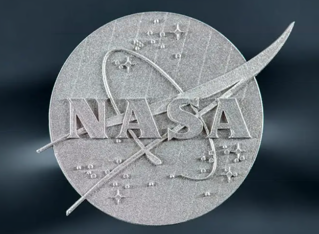 史密斯和他的团队采用了省时的计算机建模,以及将金属逐层熔合在一起的激光 3D 打印工艺,从而制造出这种新合金。他们使用此过程制作了上图所示的 NASA 徽标。