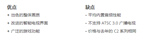 C3 广泛的功能集使其成为游戏玩家和电影迷等的绝佳选择。它有四个 HDMI 2.1 输入,支持 4K 120Hz、VRR、ALLM,以及 FreeSync Premium Pro 和 Nvidia G-Sync。云游戏选项包括 Nvidia GeForce Now 和 Utomik。