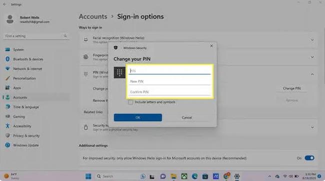请按照以下步骤为 Windows 11 上的电脑更改或创建 PIN: