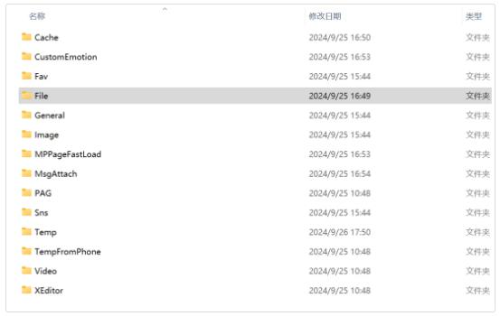 【FileStorage】可以选择性删除。里面是微信的文件存储,包含了聊天记录的图片,视频,文档(word,excel等),除了语音和消息外,其他聊天记录产生的文件基本都在这里。