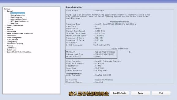 在“Drive Information”部分,确认是否检测到硬盘驱动器。