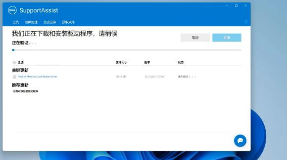 等待SupportAssist扫描任何待处理的驱动程序。扫描完成后点击“更新”。