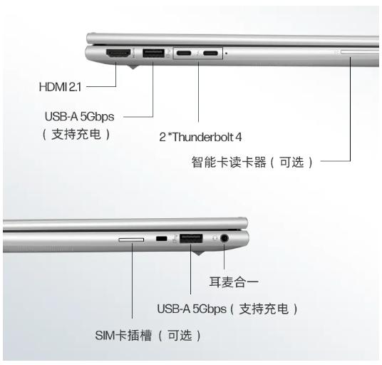 关于接口,HP EliteBook 865 G11 搭载双 Thunderbolt 4 接口,支持高达40Gbps 的传输速率,为用户带来极速的数据传输体验。同时,Thunderbolt 4+HDMI 2.1 接口,轻松实现多个屏幕扩展。