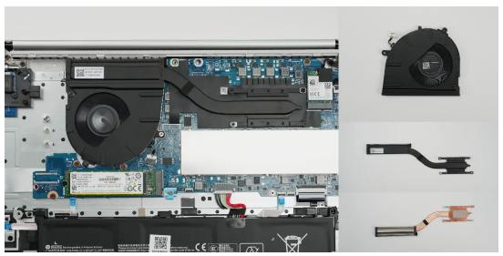 上方黑色部分是散热模块,本次拆机机器采用了单风扇单铜管散热系统,适合U系列低压处理器使用,确保在CPU在日常使用中保持冷静。