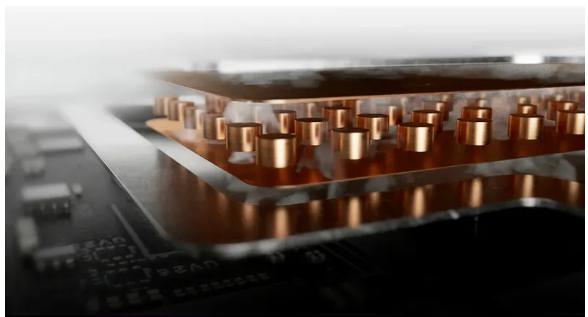 CPU 和 GPU 全部覆盖创新性 Vapor Chamber 冷凝均热板,将高温区域的热量以蒸汽形式快速排出。而超广覆盖的31号元素导热层,则利用独家调配秘方的镓硅液金混合物,以更低流动性和更强撒热性,让 CPU 和 GPU 区域的热量可以快速散去,大幅增强散热效率。