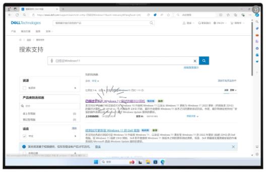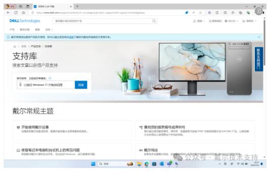 接下来,访问:www.Dell.com/support,并搜索“已通过Windows 11升级测试的戴尔电脑”。