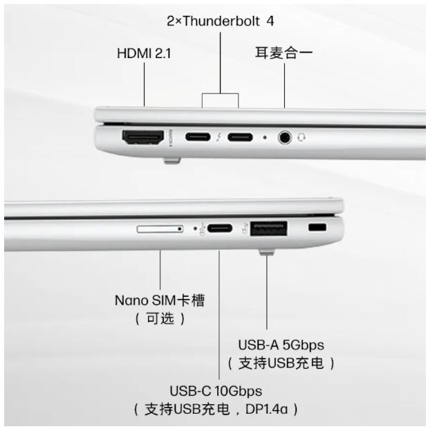在需要快速切换网络或连接多个设备时,不稳定的连接会影响工作流畅性。HP EliteBook 1040 G11支持Wi-Fi 7和蓝牙 5.4无线连接,并拥有丰富的外部扩展接口,为您提供快速稳定的无线连接和灵活的设备扩展能力。无论是在办公室、会议室还是家中,您都能轻松连接所需的所有设备,实现无缝协作。