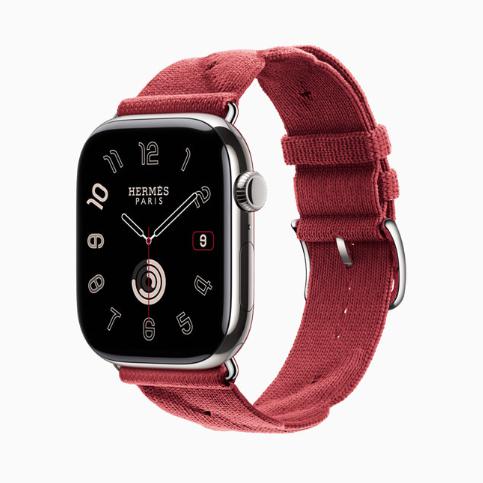 新的 Hermès 系列表带设计灵感来自品牌在材质和工艺方面的丰厚底蕴。Torsade 表带采用针织工艺,以航海索绳为灵感,有 Single Tour 和 Double Tour 两种款式及三种明艳色彩可选。Twill Jump Attelage 表带是一款纤窄精致的单圈表带,配有撞色边缘,呈现丝绸质感。Grand H 是 Hermès 的首款 Apple Watch 金属表带,使用环环相扣的缎灰色不锈钢链节制成。这款表带配有两个 “H” 形链节、可拆除以调节尺寸的链节及传统的双蝶形表扣。