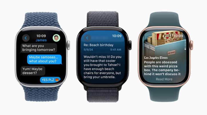 Apple Watch Series 10 配备了所有 Apple Watch 中最宽大、最先进的显示屏,提升了信息、邮件等 app 的易读性和可用性。