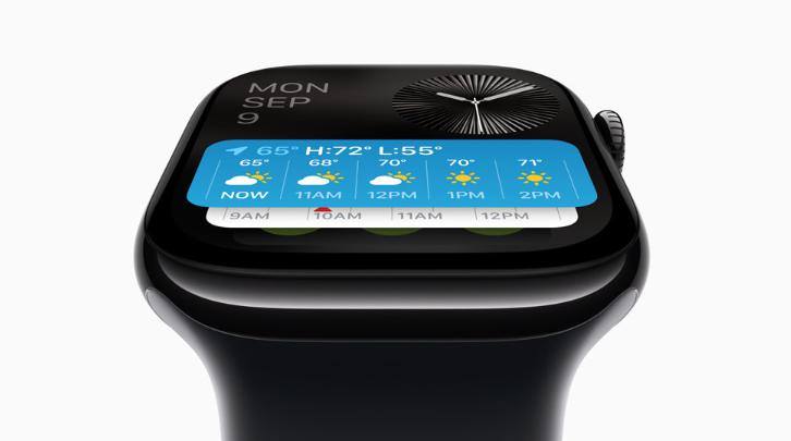 S10 SiP 芯片与内置的 4 核神经网络引擎驱动了一系列智能功能,包括更新的智能叠放功能(如图)、摔倒检测等安全功能、重新设计的照片表盘及翻译 app。