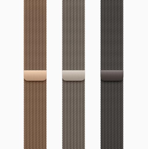 米兰尼斯表带和链式表带设计更新,与 Apple Watch Series 10 的新钛金属表壳颜色高度统一。
