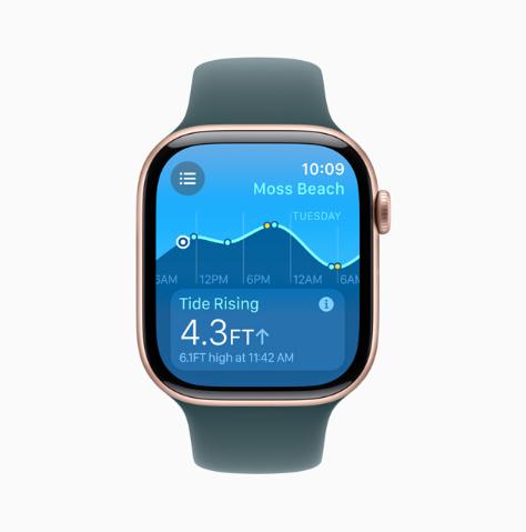 watchOS 11 推出了新的潮汐 app,供用户访问全球各地海岸线和冲浪点的七日滚动潮汐预报信息,包括满潮与干潮信息等。