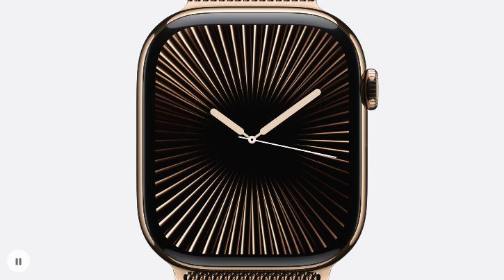 Apple Watch Series 10 提供铝金属与钛金属表款,并包括一系列惊艳色彩与外观。新的抛光铝金属外观亮黑色具有独特的华丽反光效果,新钛金属表壳包括原色、金色和石板色,具有珠宝般璀璨的光泽。
