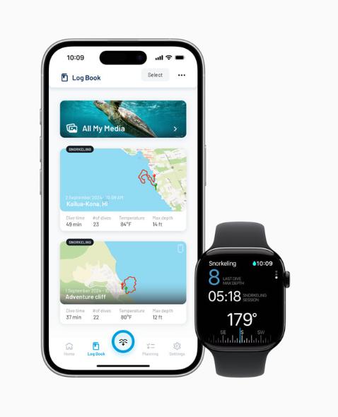 Oceanic+ app 现已适配 Apple Watch Series 10,且新增了多项浮潜功能。这款由 Apple 与 Huish Outdoors 合作开发的 app 可帮助用户轻松发现附近的人气浮潜场所;查看浮潜社区提供的海况信息;在进行浮潜时在单一视图内查看深度、水温等数据。