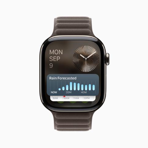 新版米兰尼斯表带与 Apple Watch Series 10 的新钛金属表壳颜色高度统一。