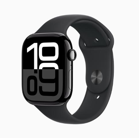 Apple Watch Series 10 现提供抛光铝金属外观——亮黑色。为实现这种外观,铝金属表壳经纳米级微粒抛光后又得到了定制阳极氧化工艺的处理。