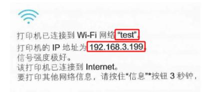 查看信息报告上的IP地址,并确认手机和打印机是否连接至同一个WiFi网络