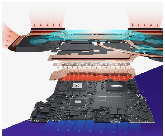 * 仅在 RTX 4080 及以上显卡配置机型配备 5 出风口结构,31 号元素与 VC 均热板。