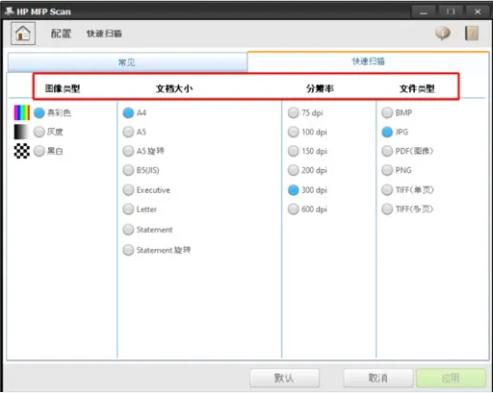 2)点击【配置】,预设扫描的参数,如分辨率、扫描的文件格式等