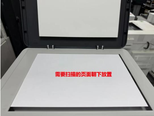 3)以左上角为基准角,将纸张放到扫描平台上,需要扫描的页面朝下,然后关闭扫描盖板