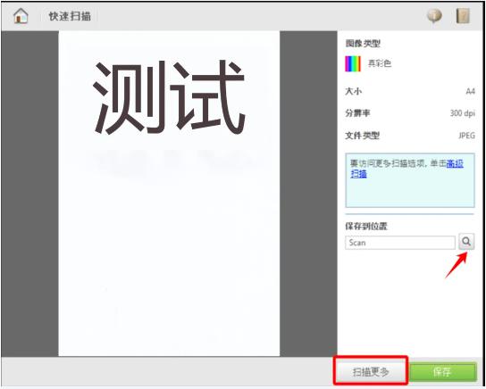 如需扫描多页,将第二页放在扫描平台后,点击【扫描更多】,重复操作,全部扫描完毕后点击保存