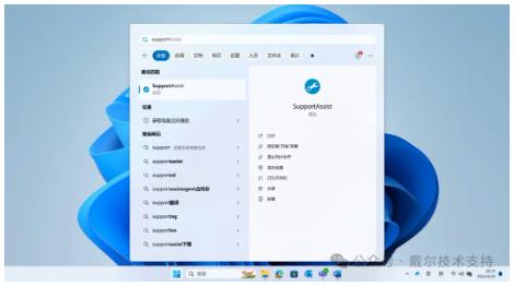 请单击Windows开始按钮搜索并打开SupportAssist。