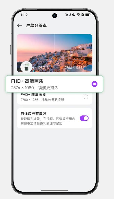 2、进入「设置>显示与亮度>屏幕分辨率>高清画质」,给处理器减轻点负担。