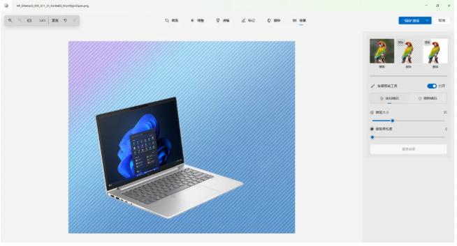 Windows 11新版照片应用程序还支持“橡皮擦”功能,能够把照片中某一不需要的元素进行去除,用户可以轻松P掉水印、文字、多余图案等,真的是又快又好用!还有标记功能,可以对照片进行画笔标记。