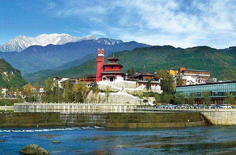 是2008年5月12日汶川特大地震重建后特别开发的纪念性和文化主题景区,如今保留着震源点、漩口中学遗址等地震原貌。水磨古镇重建了“禅寿老街、寿西湖、羌城”三大区,被誉为汶川大地震灾后重建第一镇。